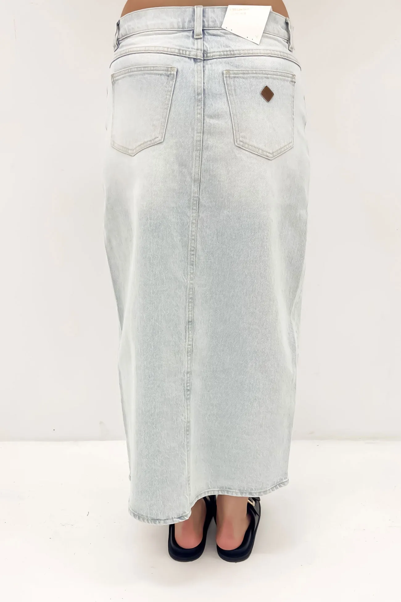 The A 99 Maxi Skirt Sura is a low rise, maxi skirt made with non-stretch rigid denim. 100% Cotton