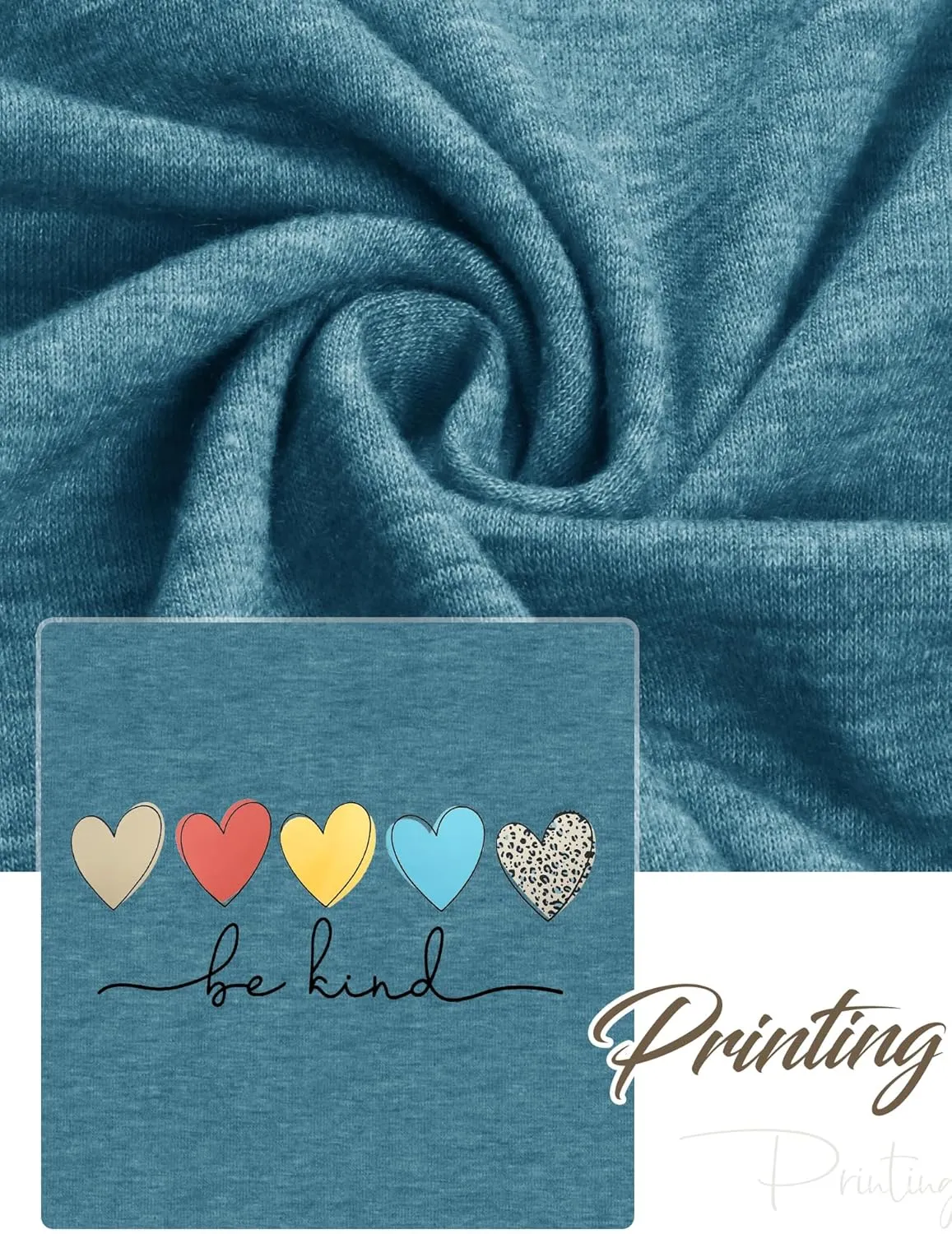 - UNIQUE DESIGN: 2 sided be kind print tshirt for women, cute colorful heart shirt, cute love graphic tees, crew neck short sleeve tops