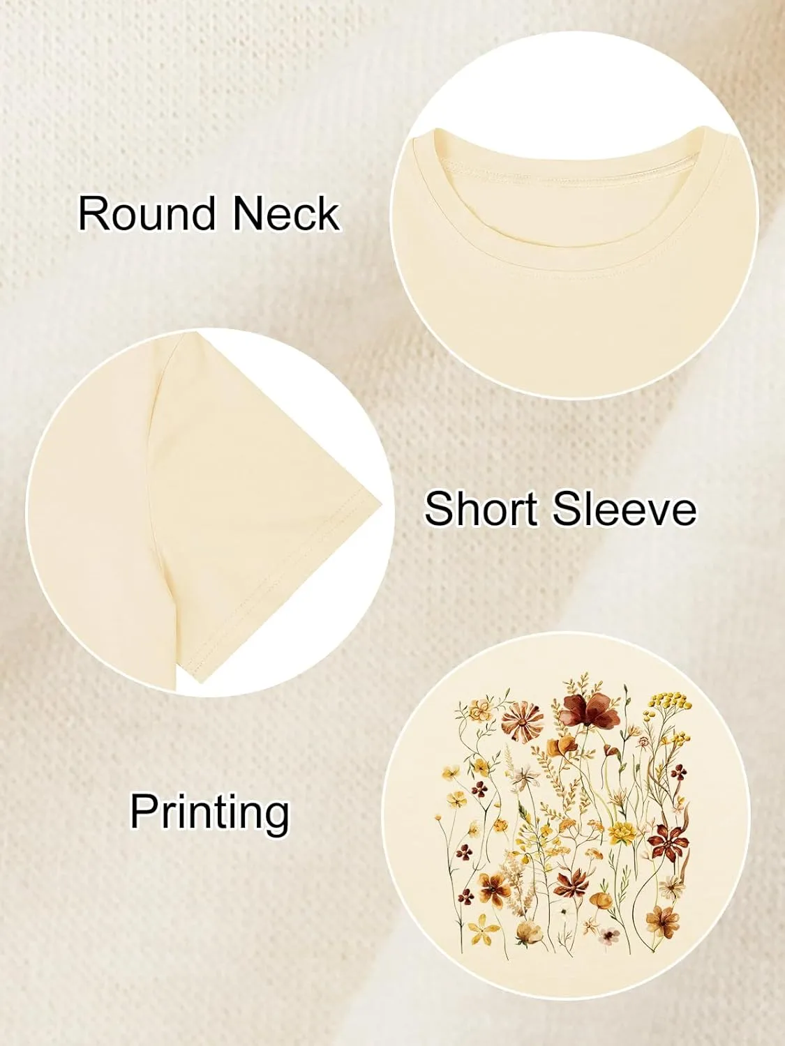 - UNIQUE DESIGN: 2 sided print tshirt for women, boho cottagecore pastel botanical floral print shirt, cute wildflowers graphic tees, crew neck short sleeve tops