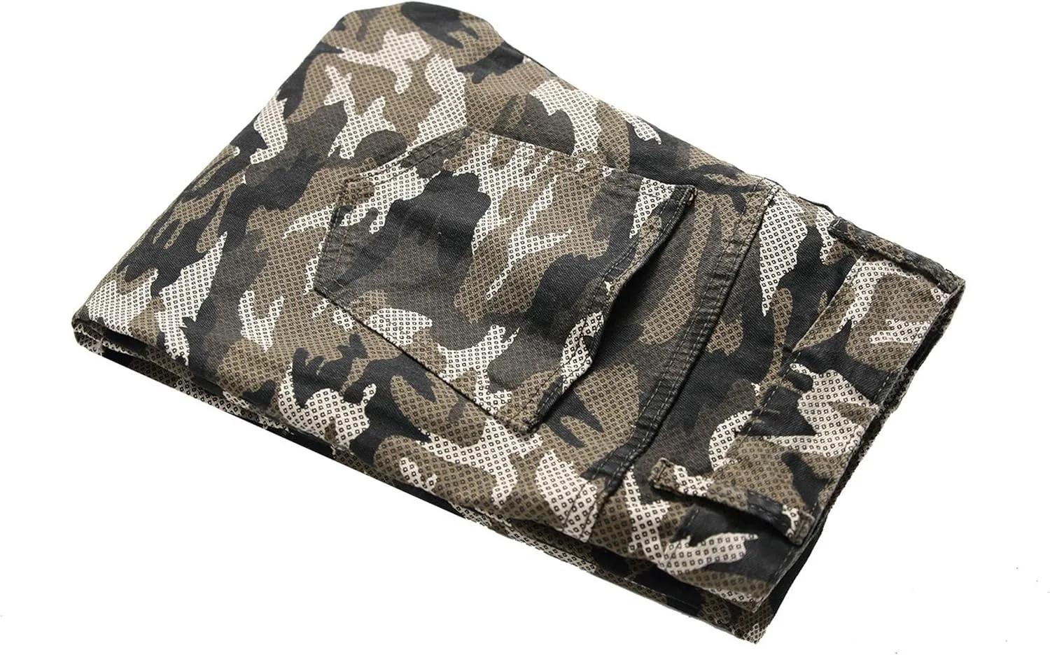• FEATURES : Three-dimensional tailor, tough stitches, sturdy zipper and button closure, featuring stylish camouflage print pattern;Regular seat and thigh, made to sit at the natural; classic pockets