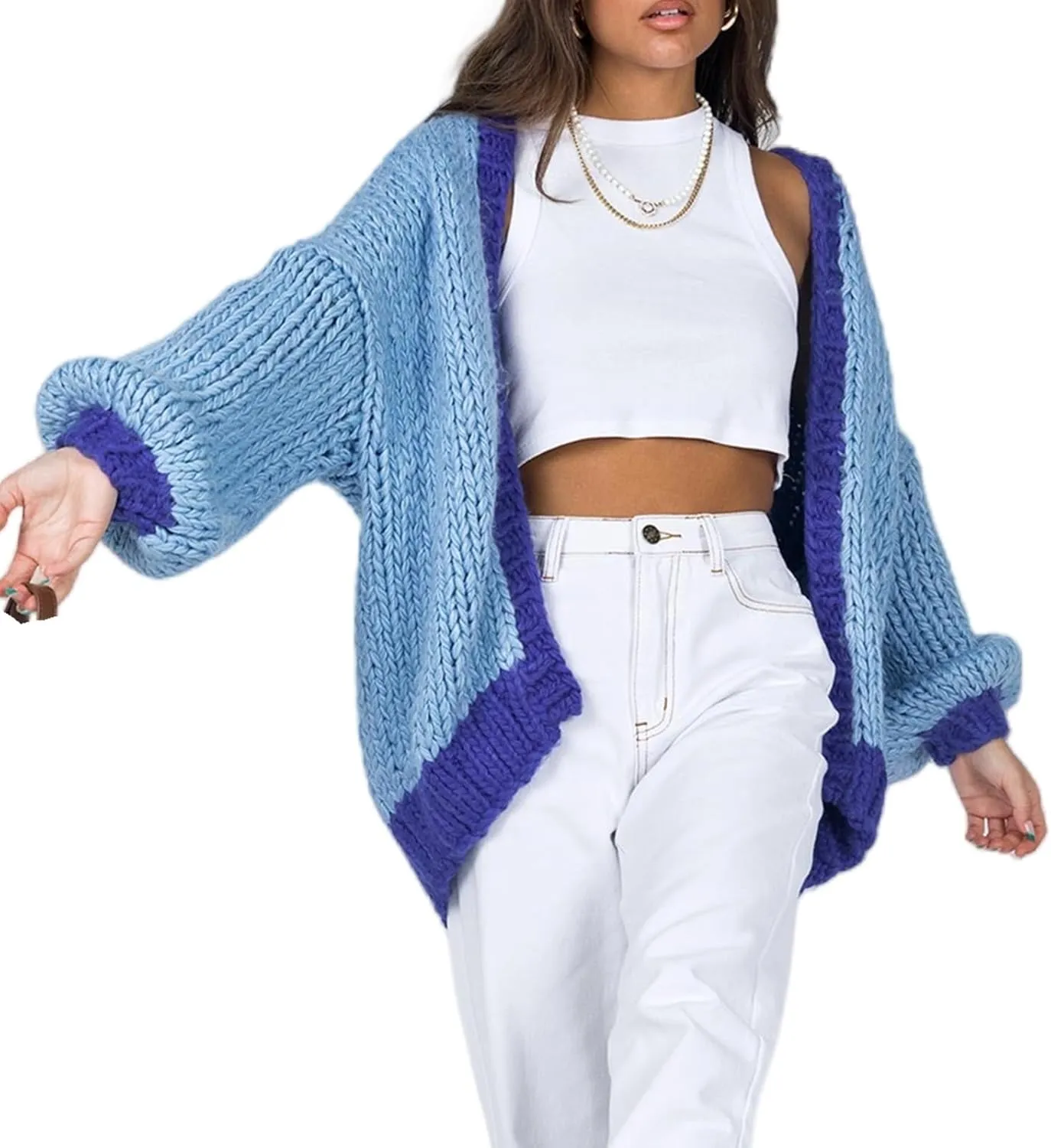 Chunky Cropped Cardigan for Women Open Front Long Sleeve Cable Knit Oversized Sweater Cute Cardigans for Teen Girls