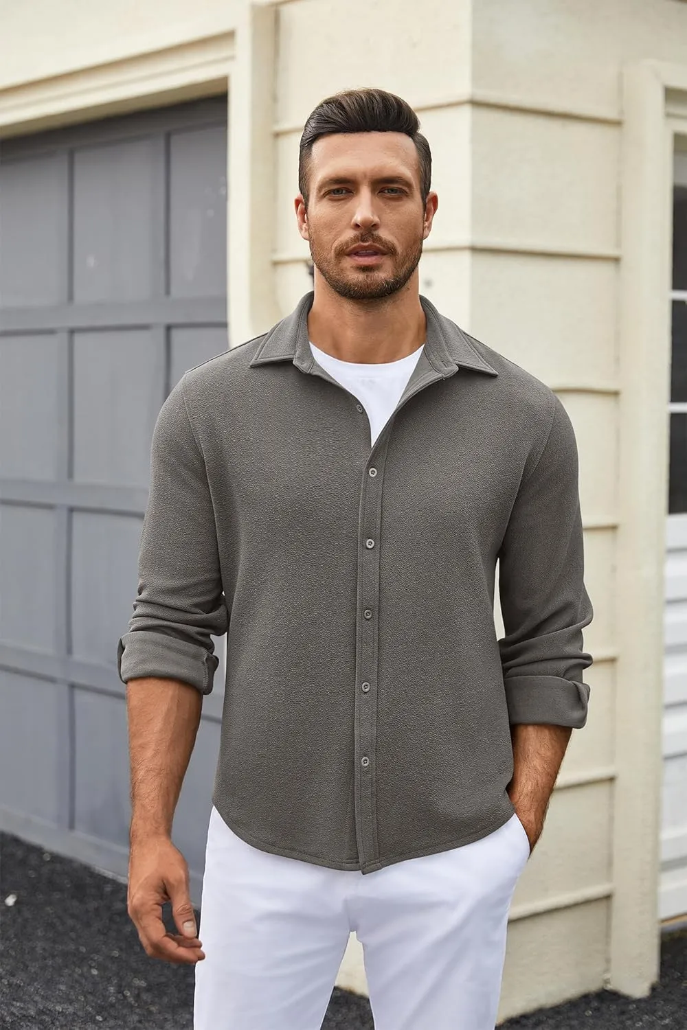 • UNTUCKED SHIRTS FOR MEN: Featuring a regular-fit cut, this mens long sleeve dress shirt combines timeless style with modern ease. The lightweight fabric enhances airflow for superior comfort. Whether tucked or untucked, it maintains a sleek silhouette for a versatile wardrobe staple