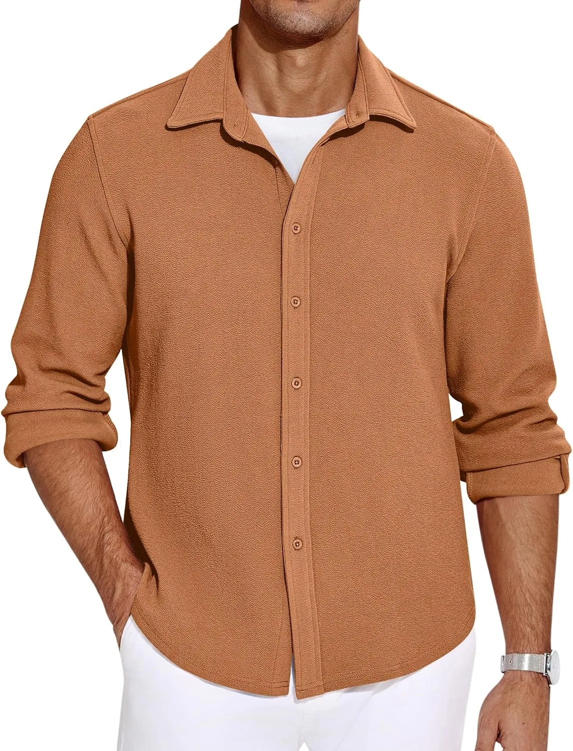 • COOFANDY DRESS SHIRTS FOR MEN: Machine-washable for convenience, this men regular fit shirt retains its shape and color wash after wash. Available in multiple sizes, it accommodates various body types for a tailored fit. No dry-cleaning neededjust toss it in the washer and enjoy a low-maintenance