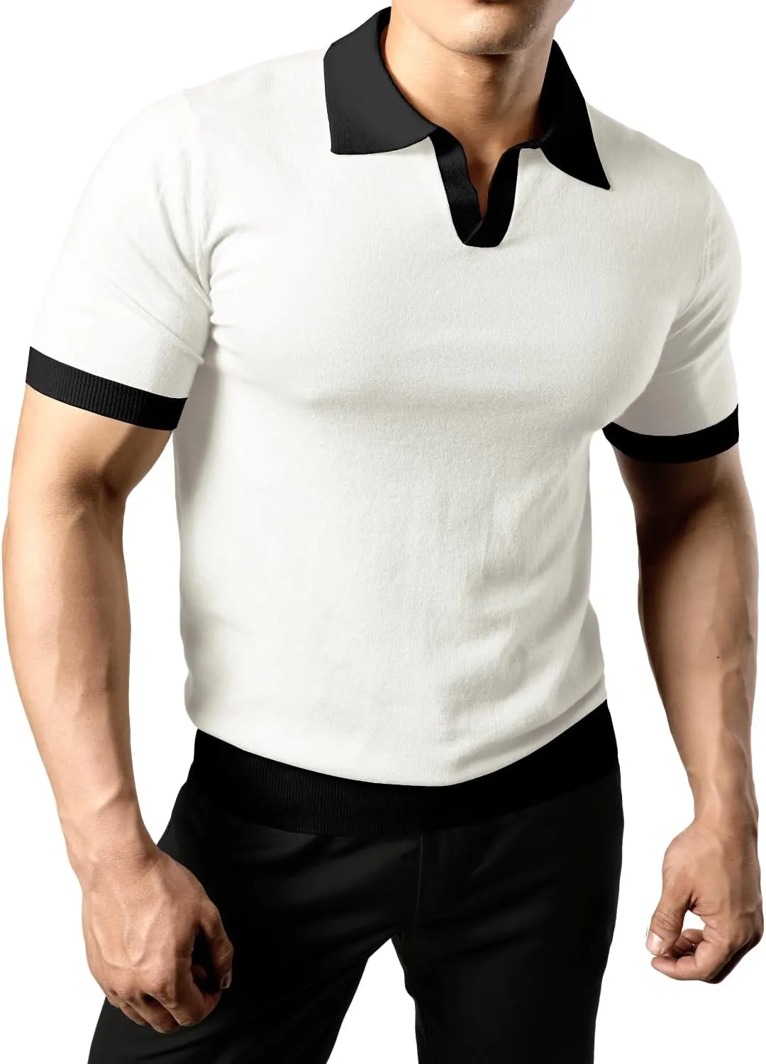 - JOGAL Golf Shirts for Men Summer Contrast Color Knitted Sweater Polo Shirts
