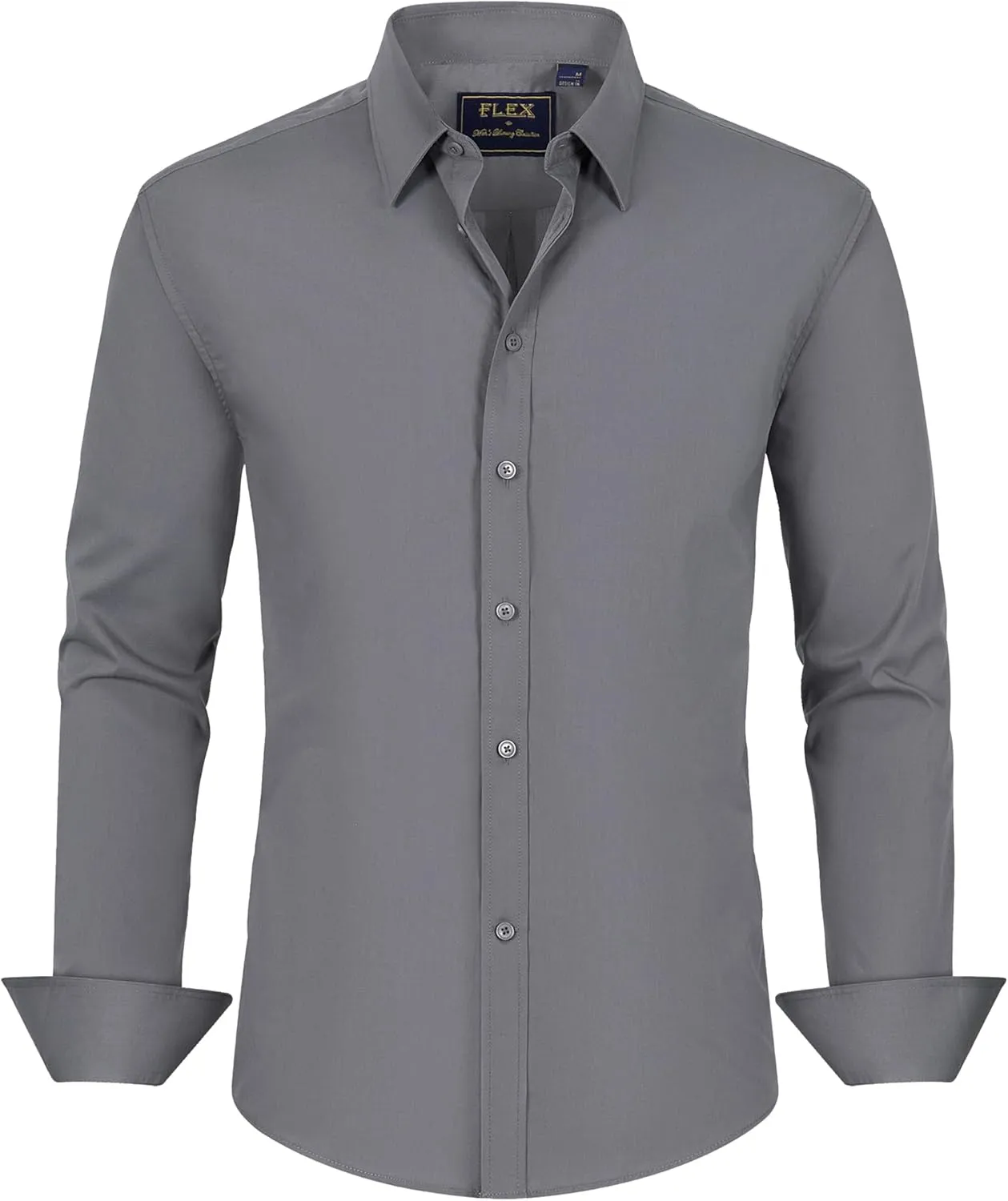 J.VER Men's Dress Shirts Stretch Stain Shield Long Sleeve Solid Formal Shirt Business Casual Button Down Shirts