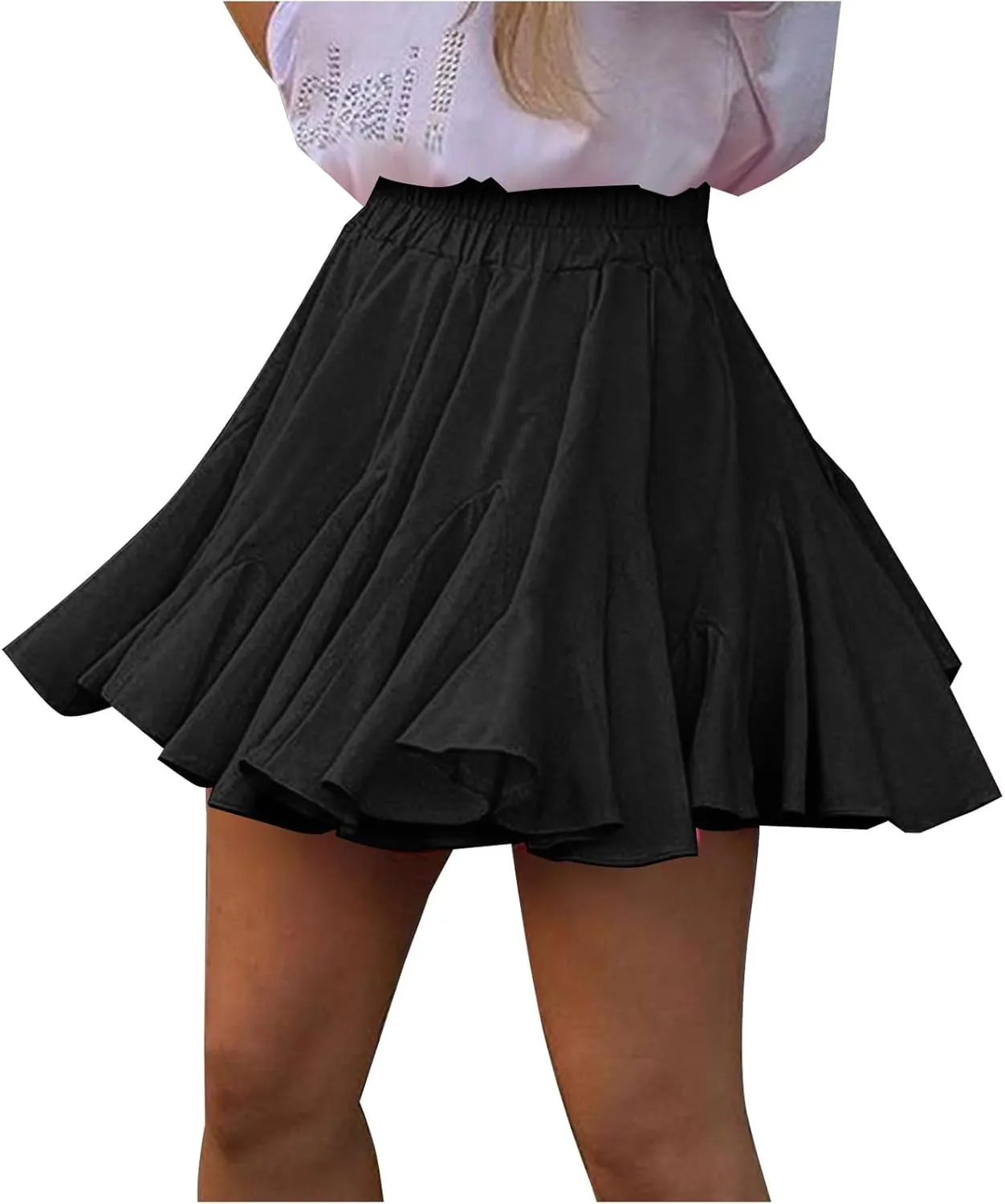 2025 Summer Pleated Skirt for Women Casual Boho Ruffle Mini Skirts High Waist Skirts Athletic Tennis Shorts Skirt