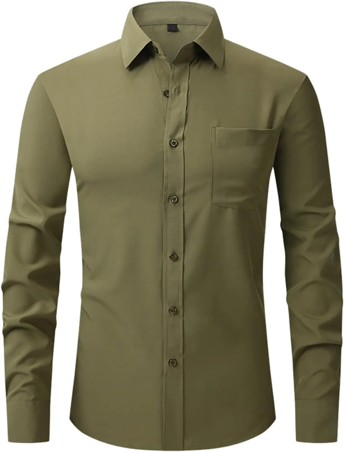 Men's Dress Shirts Solid Causal Long Sleeve Business Button Down Shirts Regular Fit Stretch Cotton Formal Dress Shirts