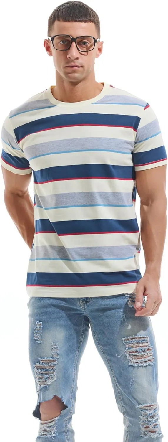 VEIISAR Men's Crewneck Striped T-Shirt Soft Elastic Cotton Tees