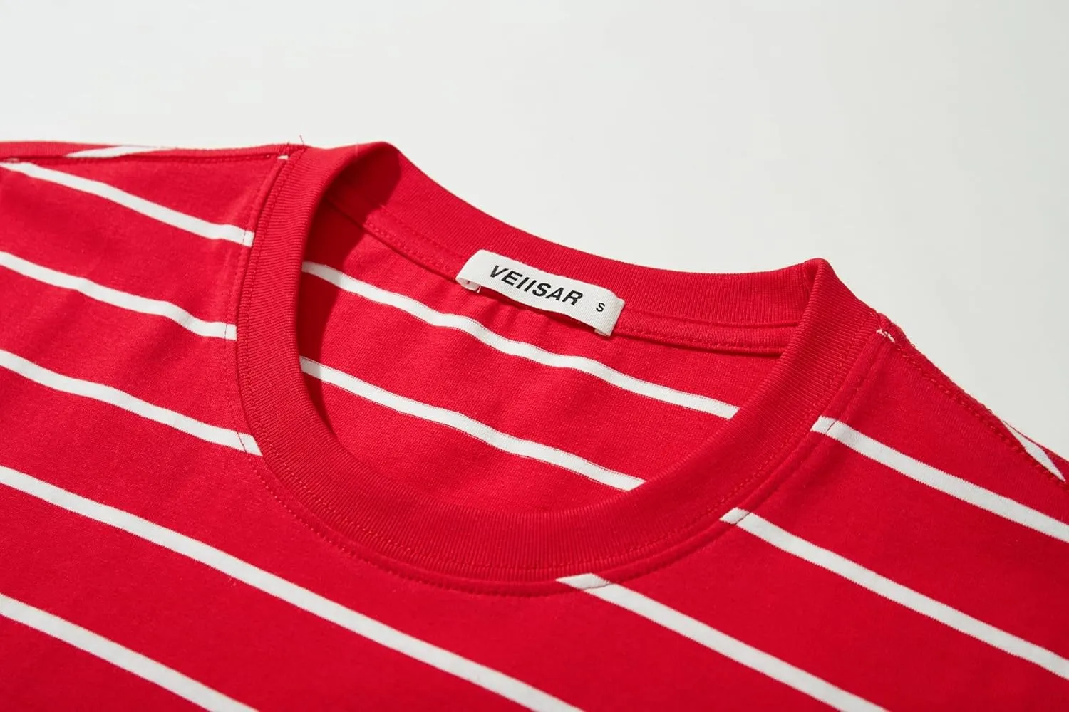 VEIISAR Men's Crewneck Striped T-Shirt Soft Elastic Cotton Tees