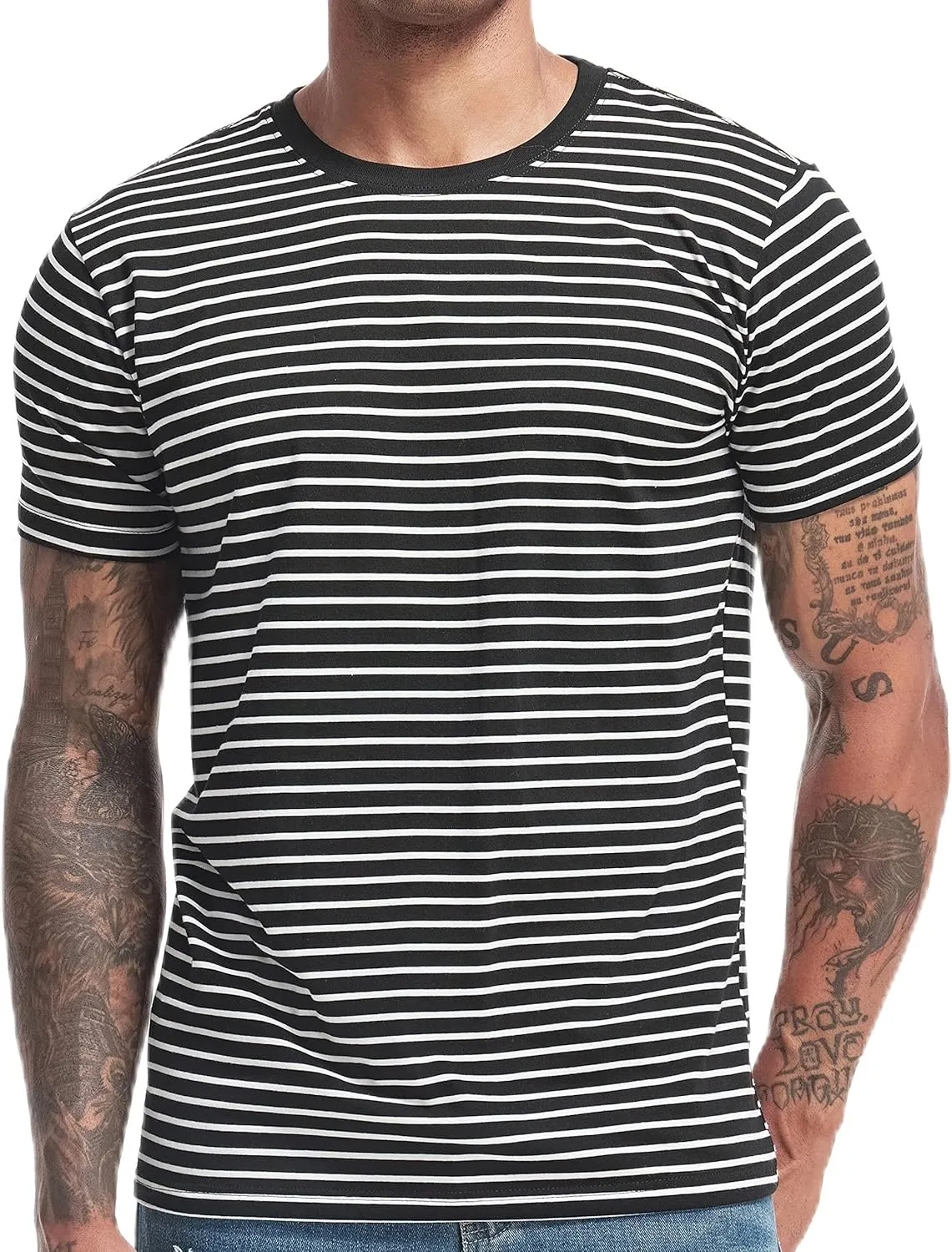 VEIISAR Men's Crewneck Striped T-Shirt Soft Elastic Cotton Tees