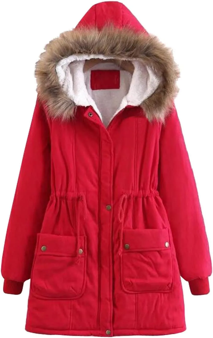 Winter Parka Coat for Women Winter Thicken Puffer Coat Warm Jacket with Faux Fur Removable Hood Warm Cashmere Outerwear