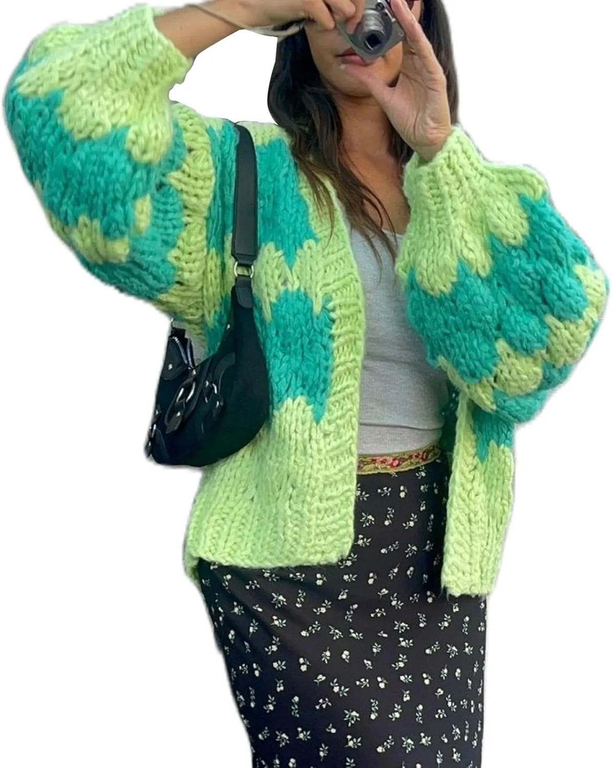 - Feature:Women cropped cardigan sweaters,fashion casual open front long sleeve chunk knit outerwear coats for women,striped open front sweater for women,color block knitted sweaters for women,loose fit cable knit cardigan,fuzzy and cozy knit cardigan sweater coat