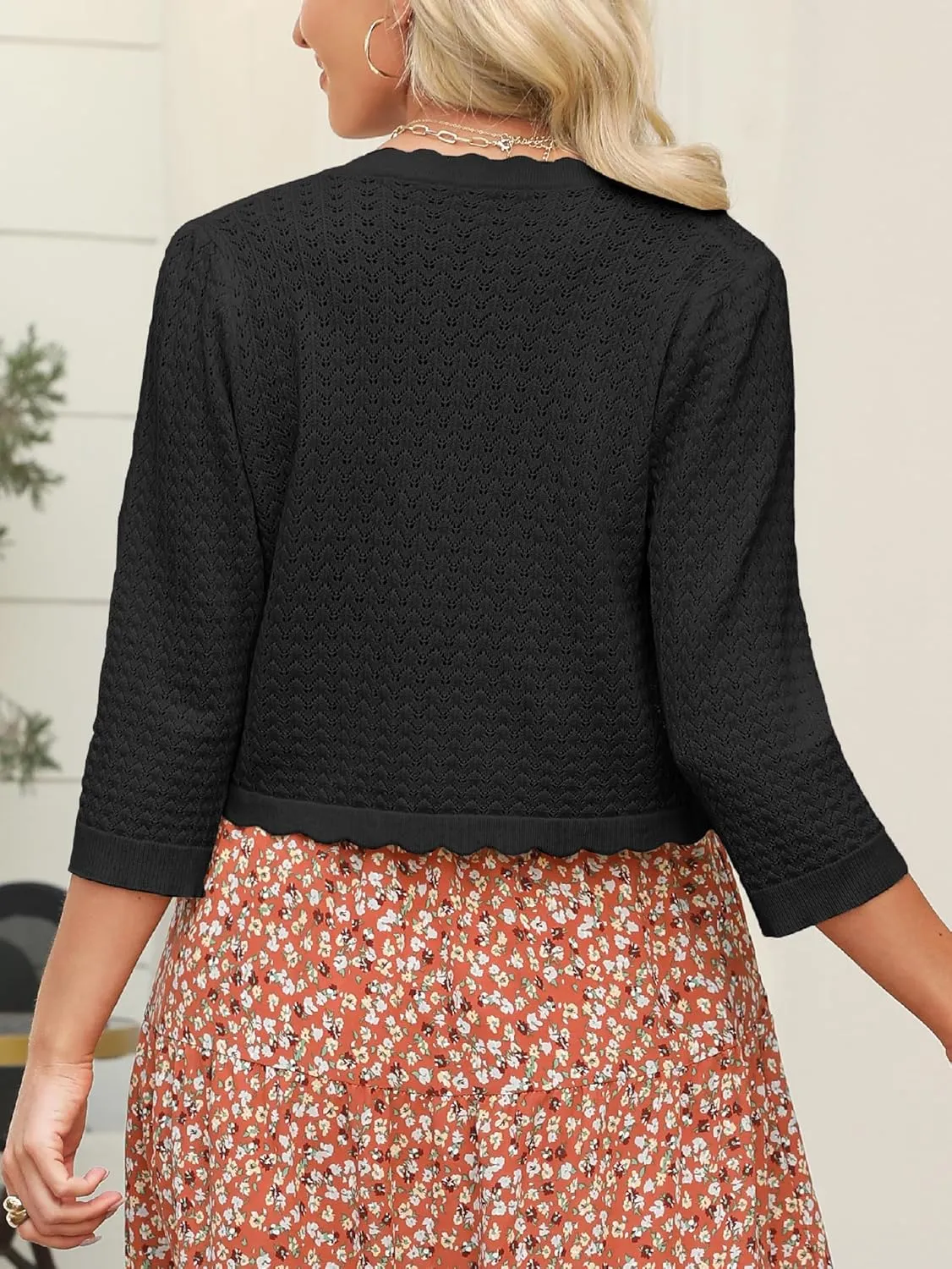 - Features:3/4 sleeves bolero shrugcropped cardigan sweaterclassical bolero shrugslightweight knit wear shrugs for womenThe curved cardigan neckline can fit your body shape very well