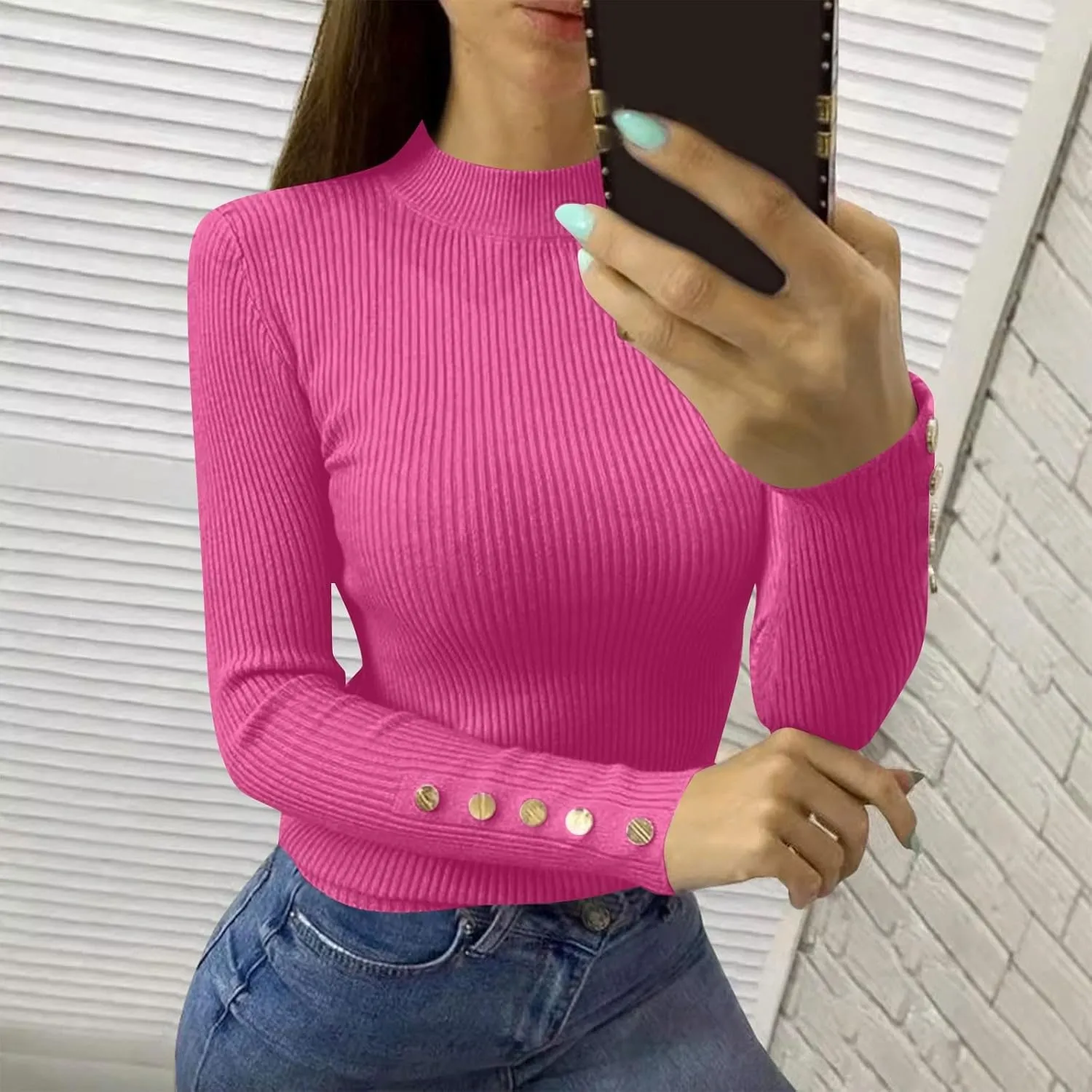 - women's turtle neck ribbed knit button down fitted t shirts long sleeve winter trendy plus size sweaters 4x-5x fall cute shirts 80s outfits hot pink l women mock neck tops ribbed knit button up tops long sleeve winter for curvy lightweight sweaters fall babydoll tops dressy casual outfits beige s
